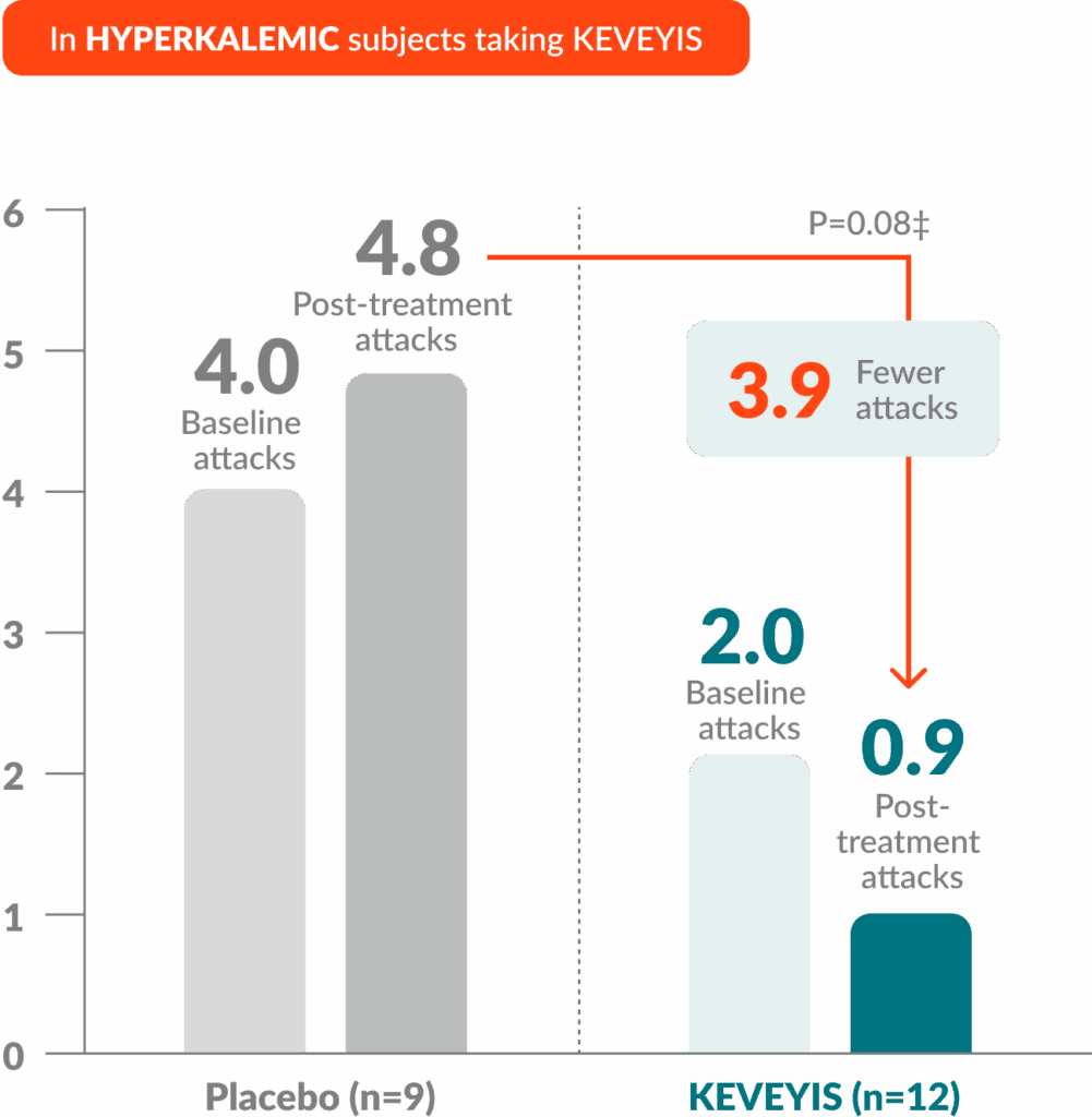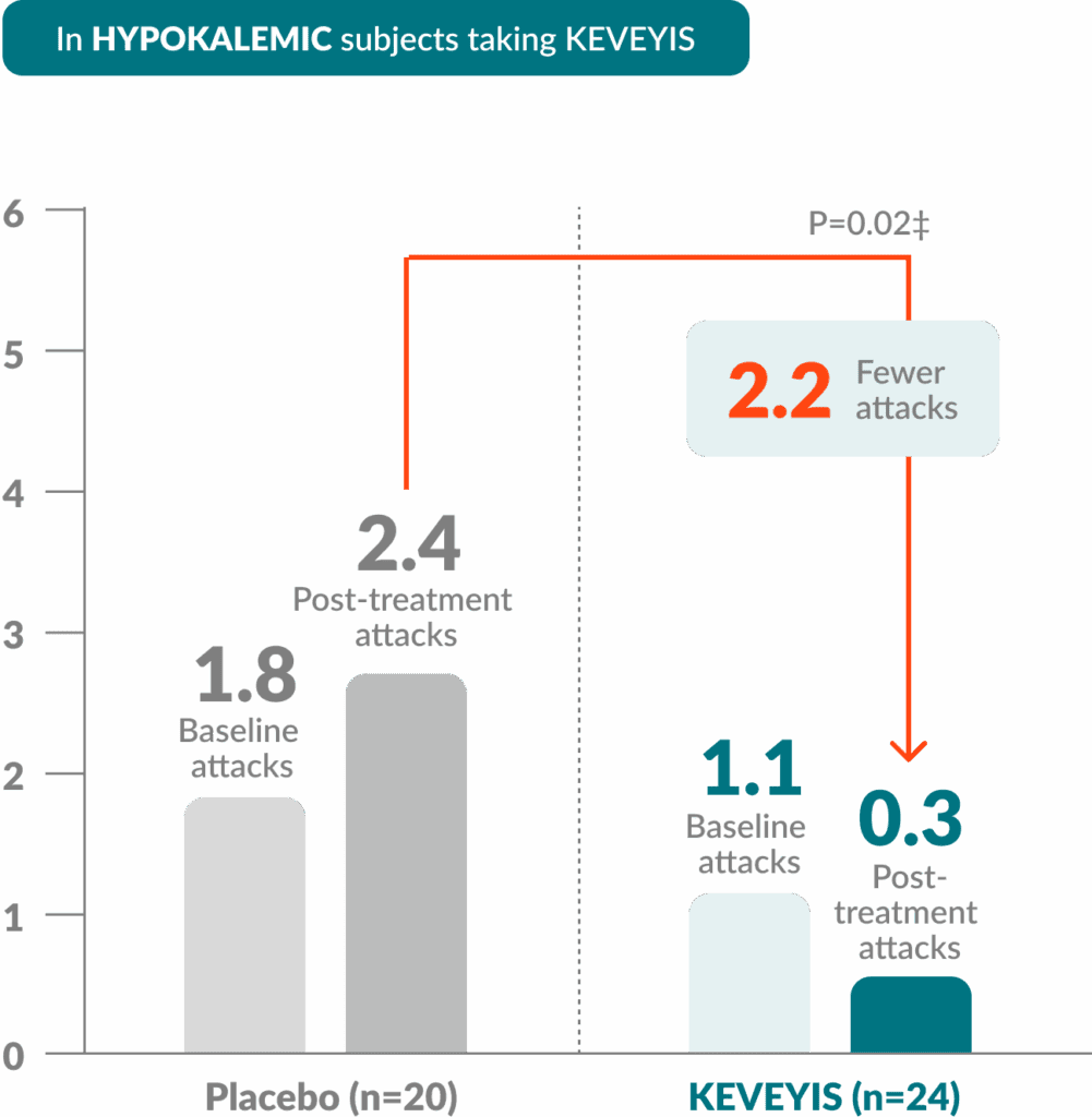 From the 9-week, double-blind study, 41 of 44 patients in the hypokalemic substudy (KEVEYIS, n=22) and 17 of 21 patients in the hyperkalemic substudy (KEVEYIS, n=9) moved into a 1-year, open-label extension (OLE) phase in which all participants received KEVEYIS.